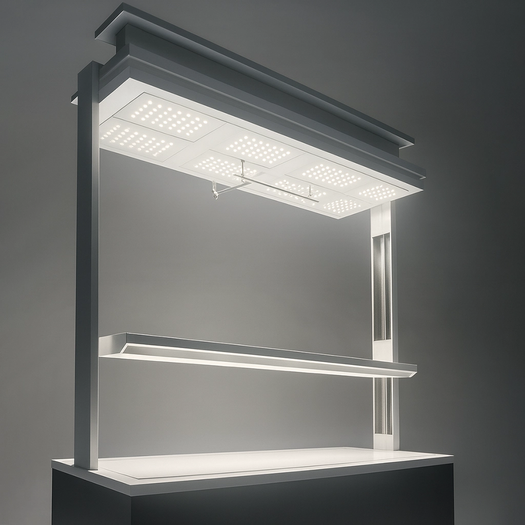 Çok katlı asansörlü raf yapısı ile ürünler düzenli ve güvenli şekilde saklanır.